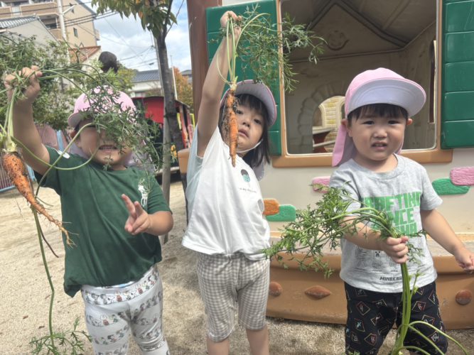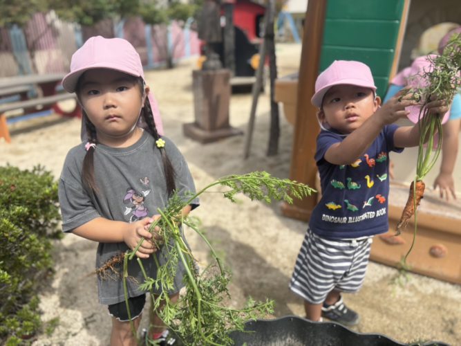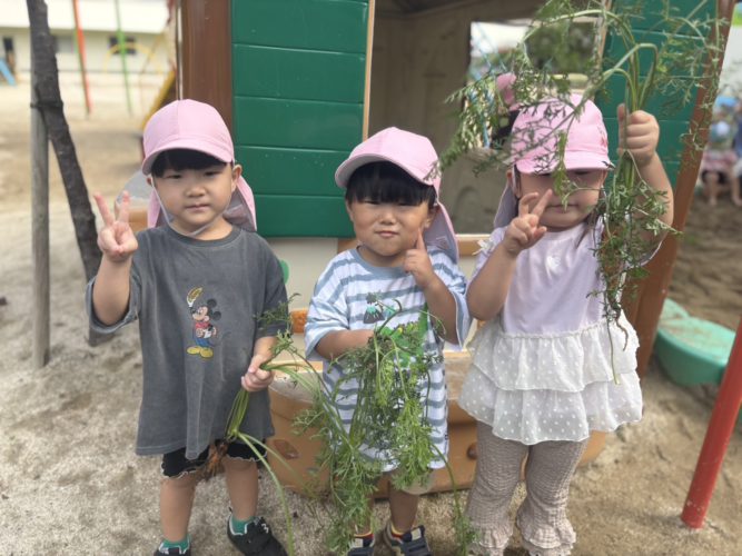 いちご組さん🍓幼稚園でできた🥕人参を🥕収穫