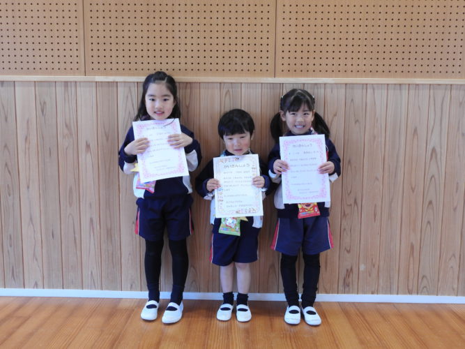 1年間休まず幼稚園に通ったお友達よく頑張りましたね☺